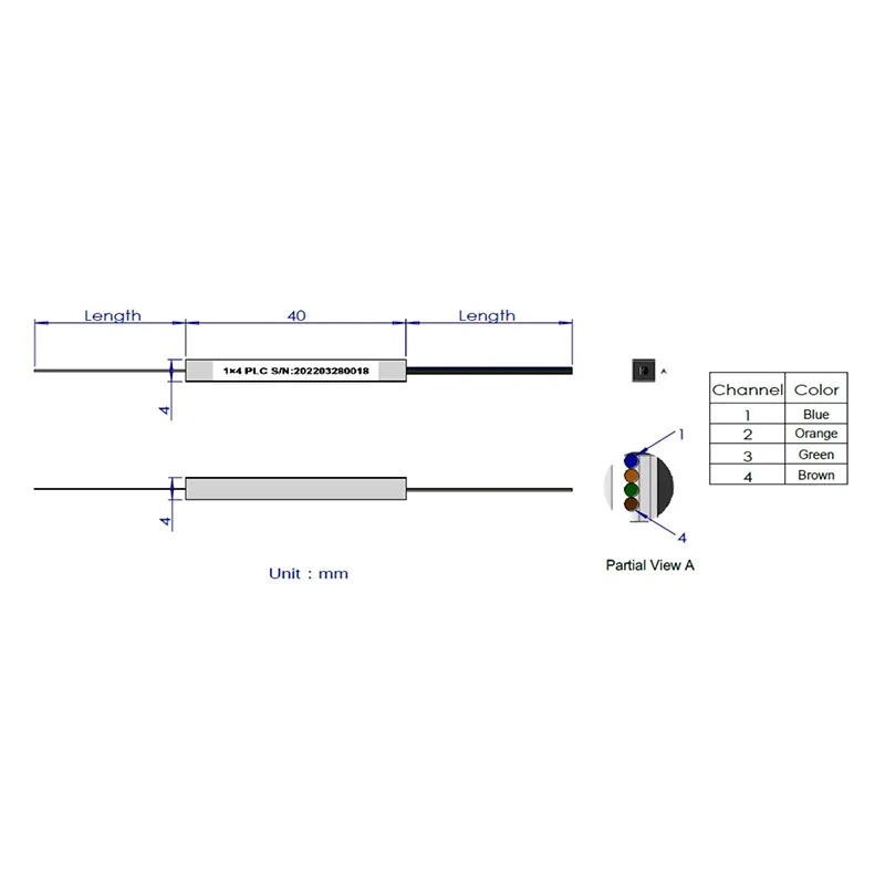 1x4/1 × 8 PLC Splitter Steel Tube Package 40x4x4mm, na may 250μm Bare Fiber 2.5 +0.1/-0m, walang konektor.Mga pagtutukoy sa pagganap:Mga parameterSimboloMga pagtutukoyUnitNumero ng channelCh1 × 41 × 8Haba ng operasyon1260 ~ 1650nmHaba ng pagsubok1310/1550nmSpectral ratio25%12.5%%Pagka......